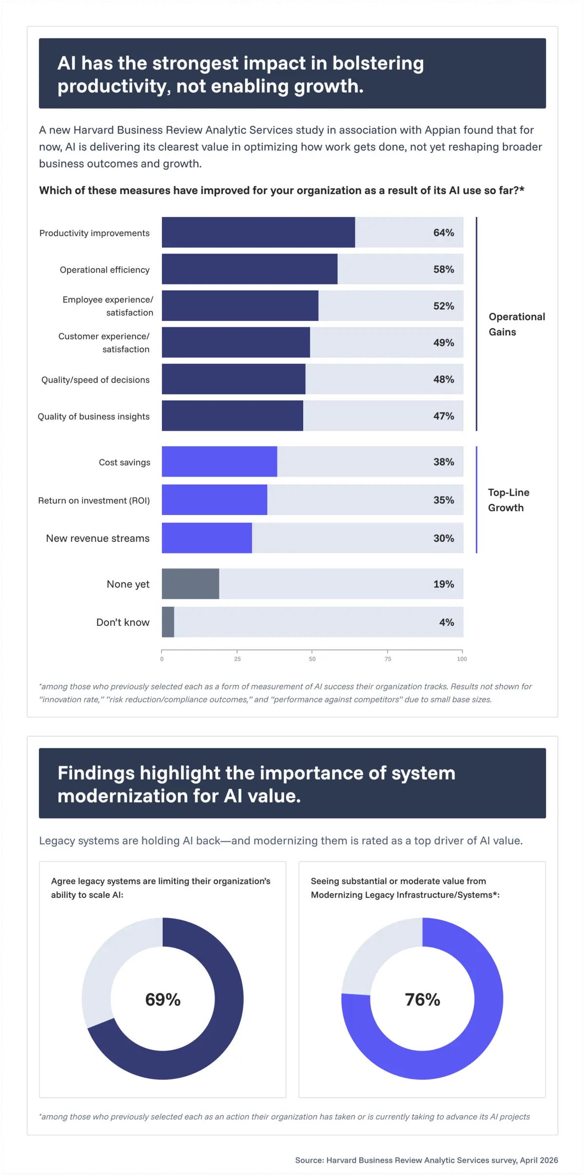 The study, conducted by Harvard Business Review Analytic Services and sponsored by Appian, found that 59% of organisations moving forward with AI to some extent already have it in production. However, the gains reported were concentrated in productivity and operational efficiency rather than revenue growth or return on investment.